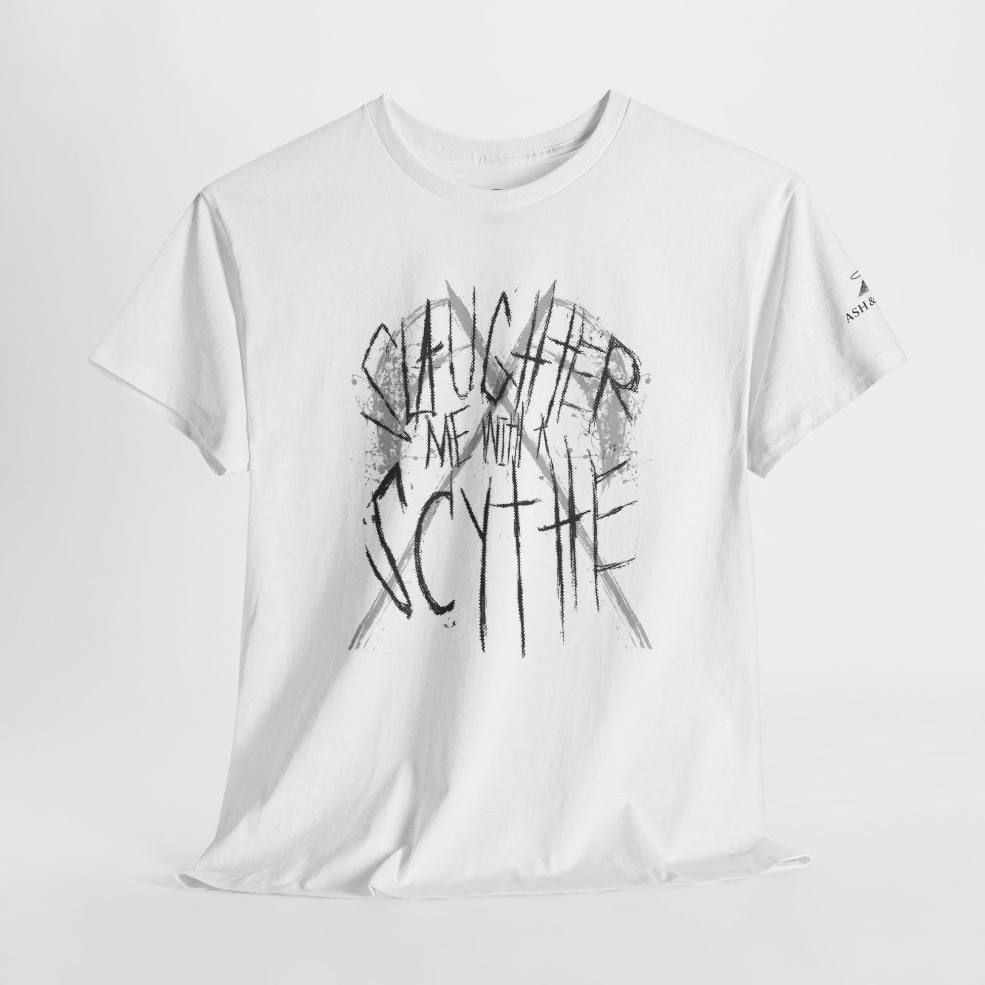 This classic cotton tee carries a raw, hand-drawn statement graphic that reads like a scratched message from the margins—dark, jagged lines layered with subtle distressing. The medium-weight fabric feels substantial without being heavy; the crew neckline and classic fit keep the silhouette straightforward so the artwork takes center stage. Wear it alone with worn denim or layered under a flannel for an urban-grunge look that reads thoughtful and a little fierce. The understated back keeps attention front-and-center while the tear-away label and reinforced shoulder tape keep you comfortable all day.
